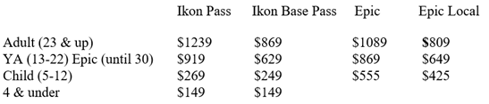 Ikon offers special GROUP PRICING (valid for new Ikon passes through May 2026 TBD). As part of East Iowa Ski Club first time pass holders Adult (23& up) - $1279, savings of $120 from regular new Ikon pass $1399. Ikon Base is $909, savings of $40 from the regular new Ikon Base pass $949. This special pricing is only offered to registered group members and can NOT be advertised outside of private club communication.